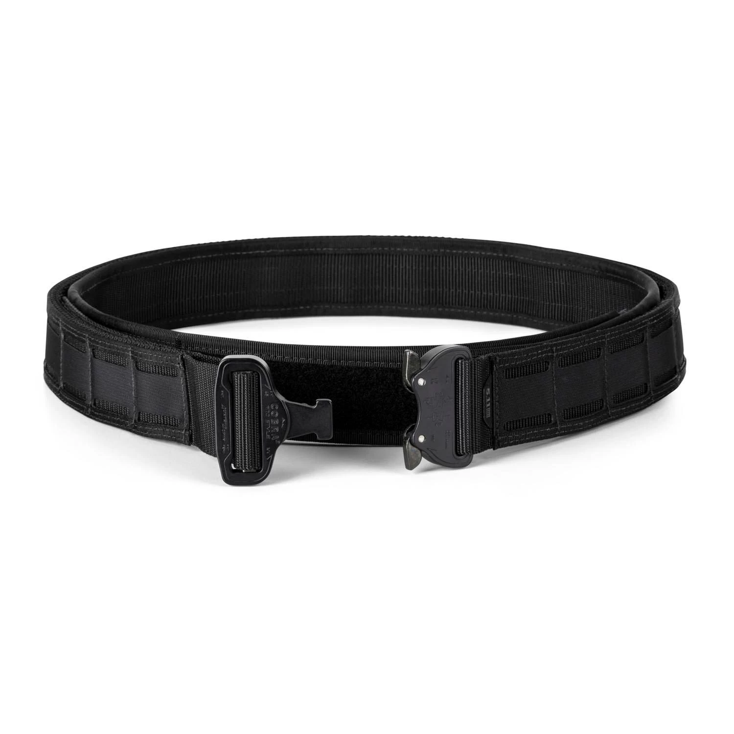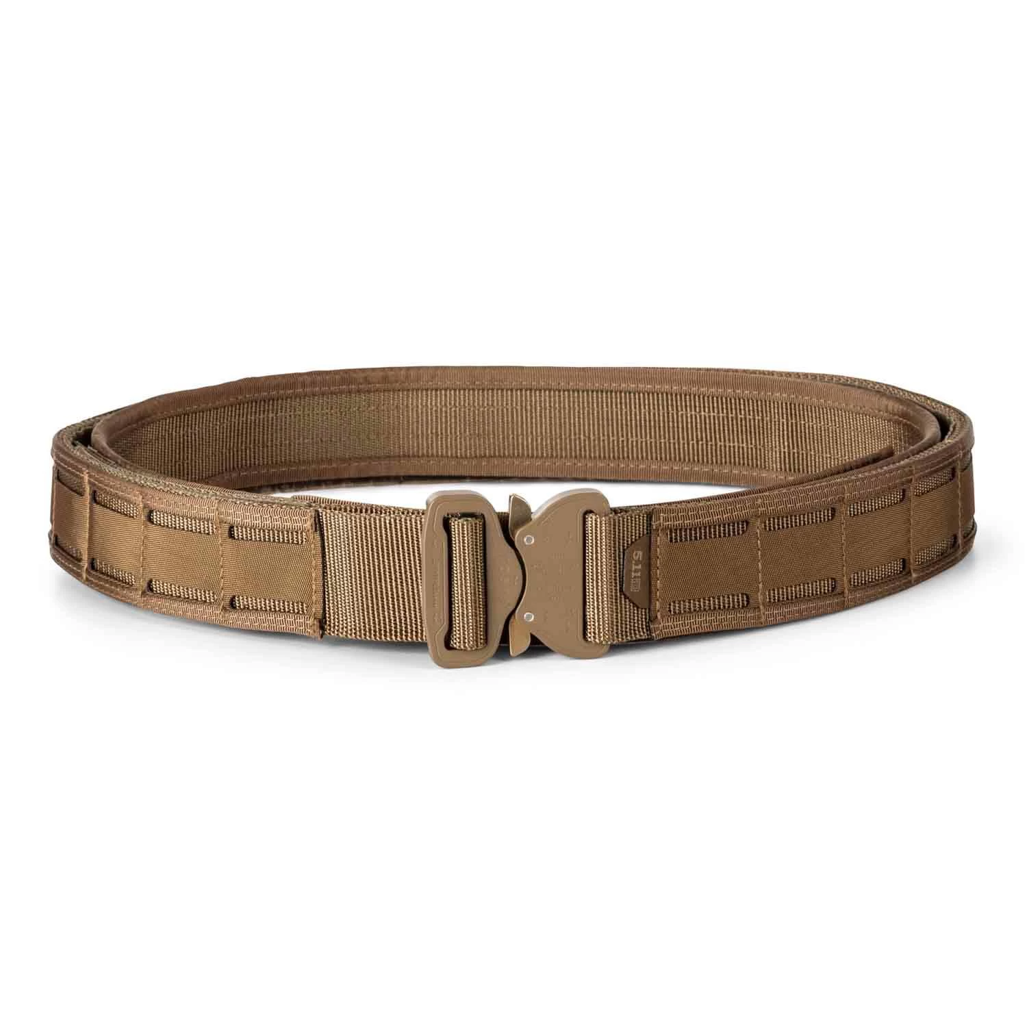 The 5.11 Maverick Battle Belt is designed as an inner/outer belt system and features an ergonomic curve for maximum comfort and stability. The inner nylon belt provides durable support, while tightly securing the outer belt with its loop face. The outer belt is constructed from TAC-LAM™ high strength laminate construction with dual nylon webbing. The hook backing and the Austri Alpin COBRA® buckle allow for quick attachment and removal without sacrificing security. On top of that, this tactical belt features top and bottom weaving access in addition to the centered laser-cut pill for effortless attachment of your duty gear.