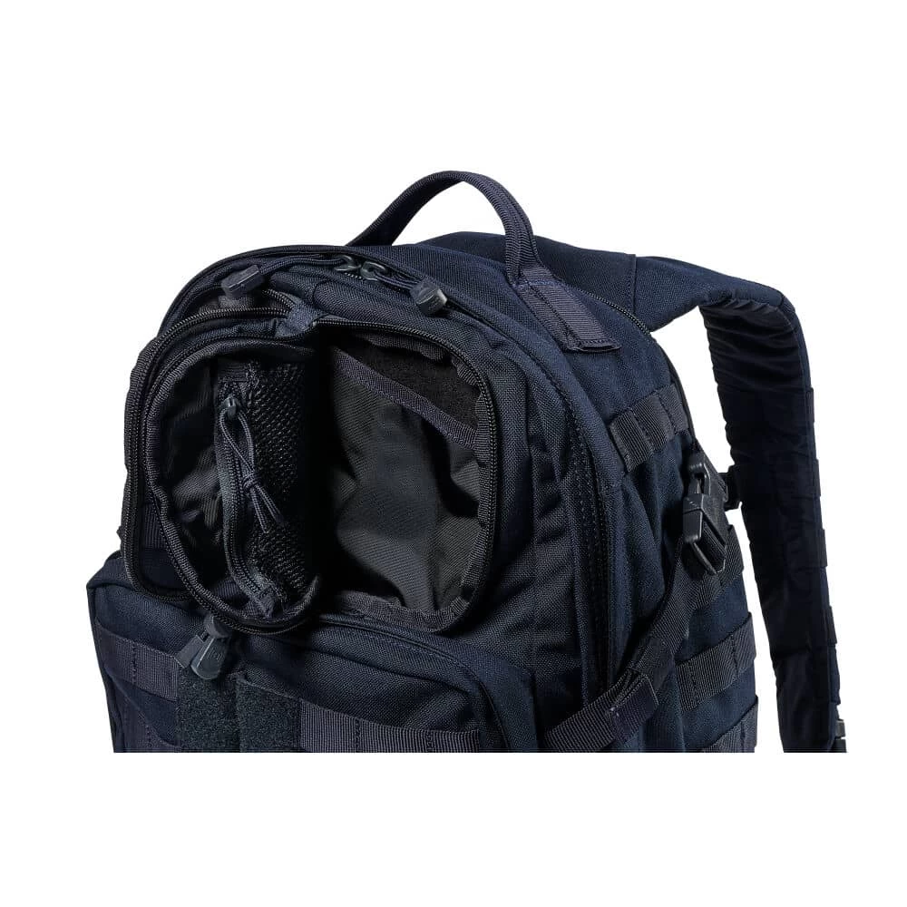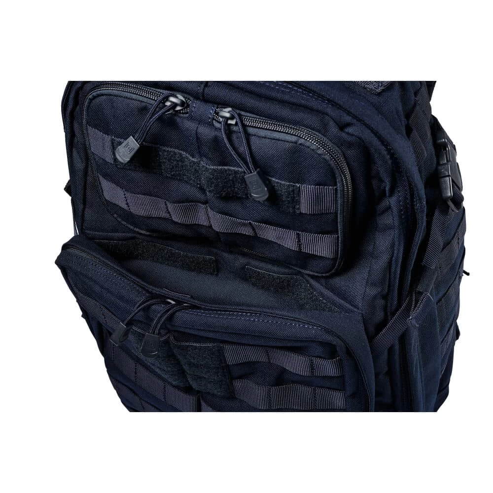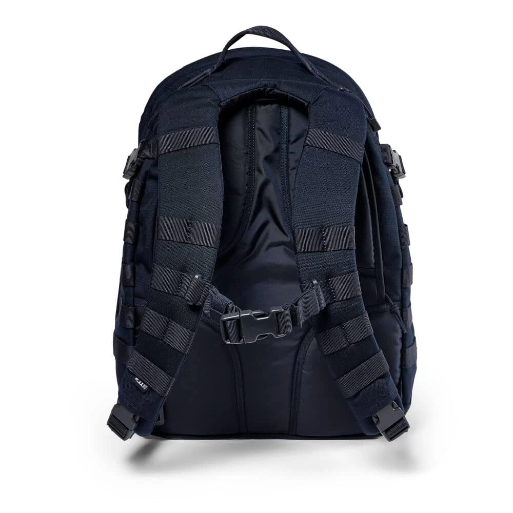With a mid-range capacity and mission-essential features, the 5.11 Tactical RUSH24â„¢ 2.0 Backpack 37L is a best-seller for a reason. With a spacious 35-liter capacity, 3-liter hydration compartment, and CCW readiness, this tactical backpack is ideal in both uncultivated and urban environments. This tactical go-bag is made from durable water-resistant coated 1000 D nylon that keeps your gear safe and secure. Multiple utility compartments and a 15-inch laptop sleeve ensure you always have everything you need, while a contoured yoke shoulder strap system evenly distributes load to reduce stress on pressure points. No matter where the mission takes you, this tactical pack has your back every step of the way.