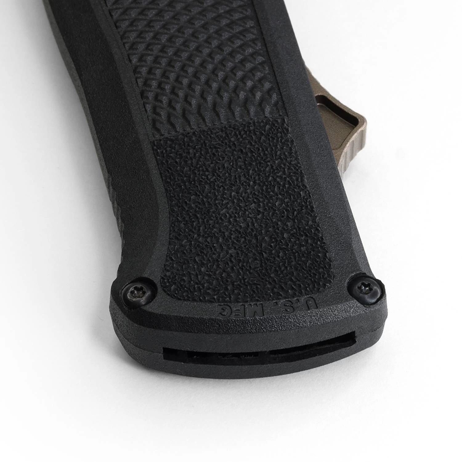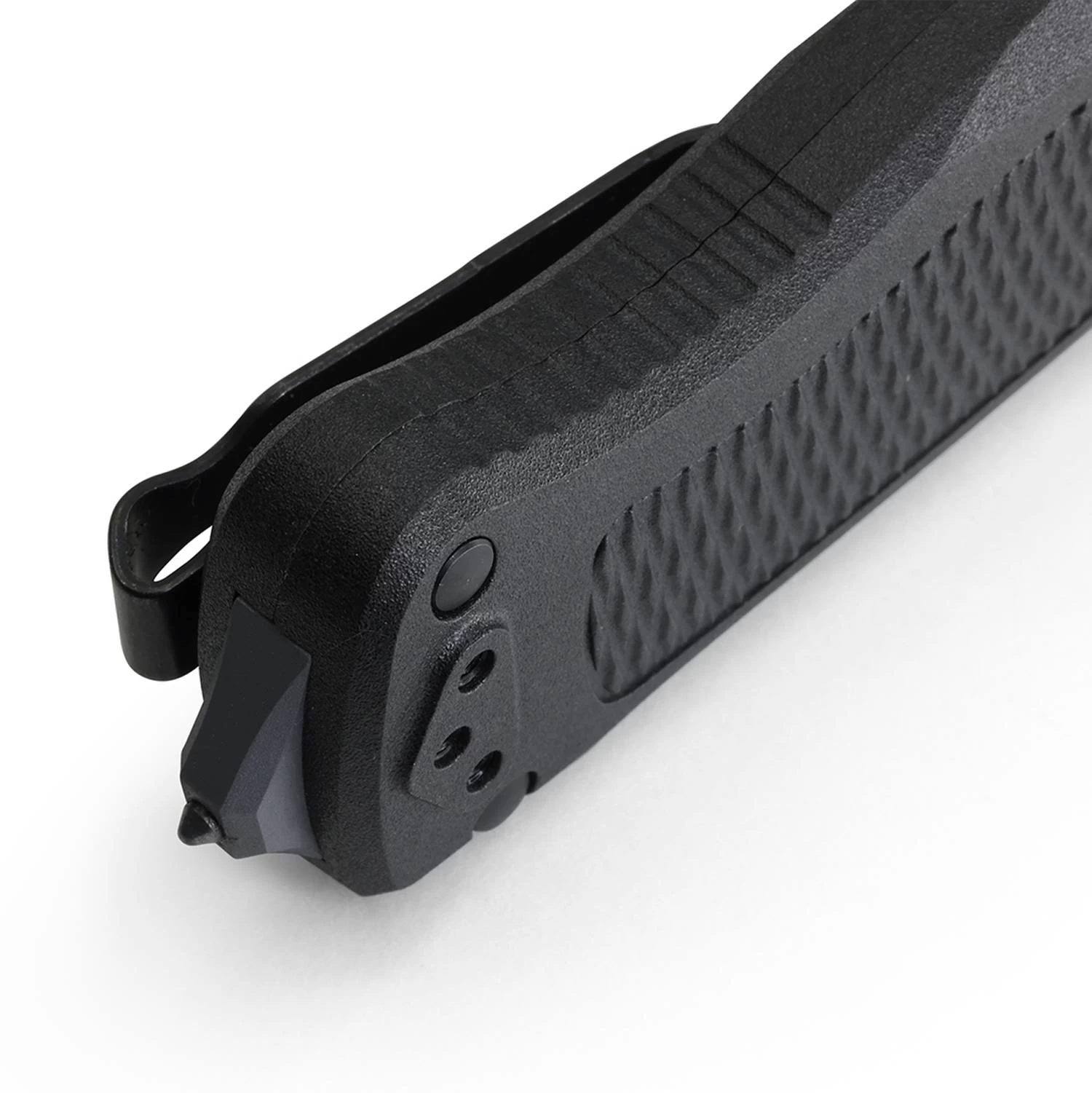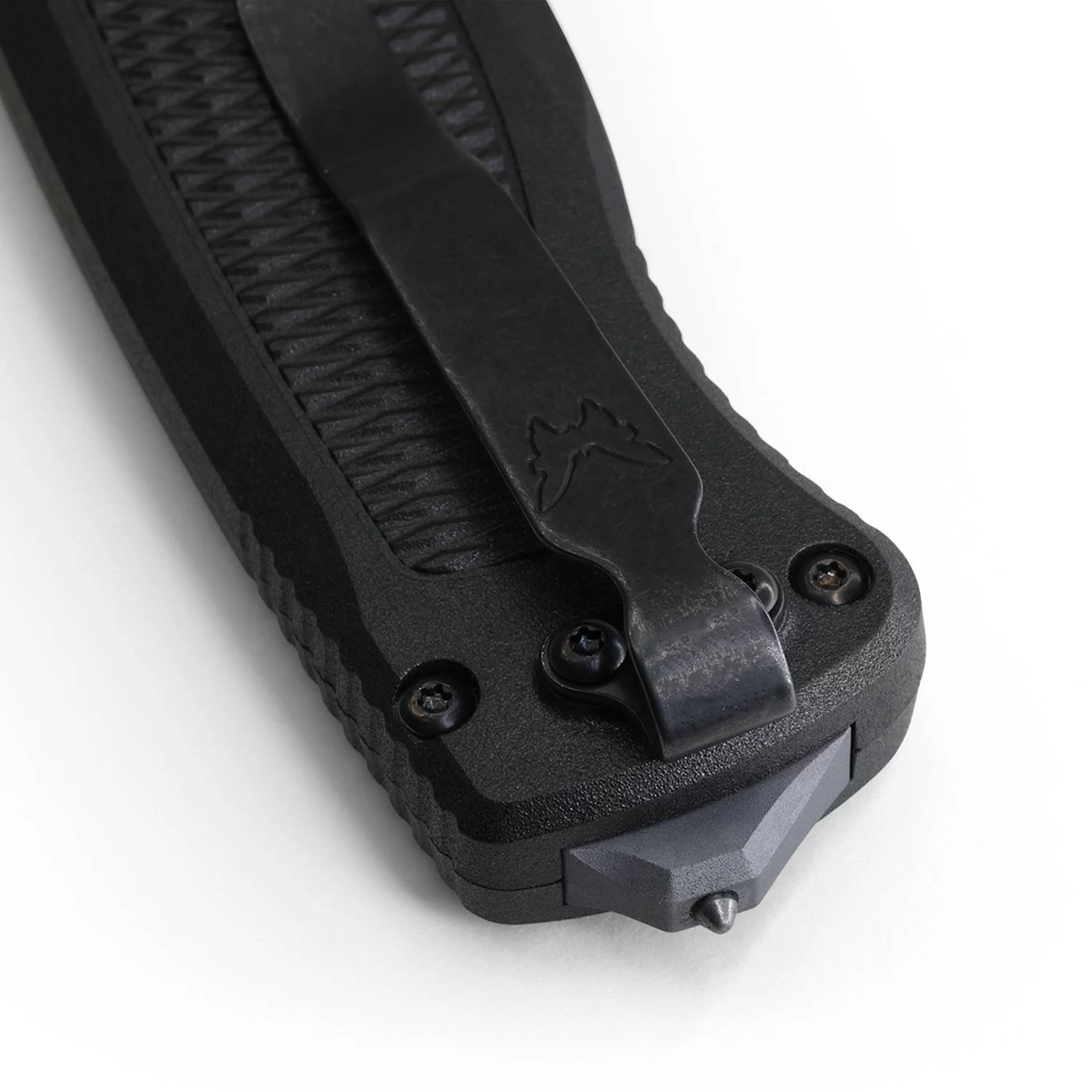Be prepared the Benchmade 5370FE Shootout Knife. This combat-ready automatic knife features double-action, out-the-front action at the push of a button, giving you access to your backup weapon at a moment’s notice. A coated reverse tanto style blade is ground from high-strength steel that resists chipping and breakage. With an integrated carbide glass breaker and reversible pocket clip, this versatile OTF knife will have you ready to face any challenge that lies ahead.