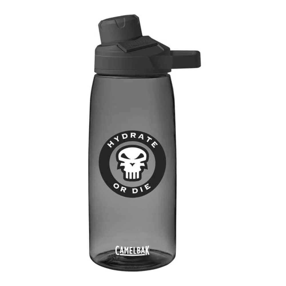 Featuring the bold “Hydrate or Die” logo, the CamelBak Chute Mag 32 oz “Hydrate or Die” Bottle with Tritanâ„¢ Renew is made from 50% recycled materials. With an odor and stain resistant Tritanâ„¢ Renew Copolyester vessel, a leak-proof universal cap, and an easy carry handle, this water bottle is perfect for work, travel, sports, and more. The Chute is 100% BPA, BPS, and BPF free and all parts are dishwasher safe.