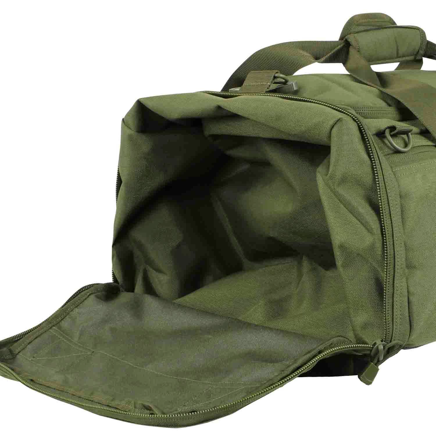 The bottom of the Condor Duffel Bag is made out of reinforced PVC. There is a window on the front where you can put your I.D., which is a useful feature when it comes to travelling. It comes with backpack straps, so instead of having to lug it around, you can strap it over your back and get moving. The top flap contains an inner mesh organizer, and you also have your choice of what color you want your bag to come in.