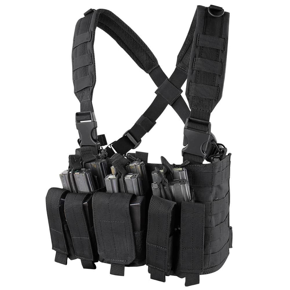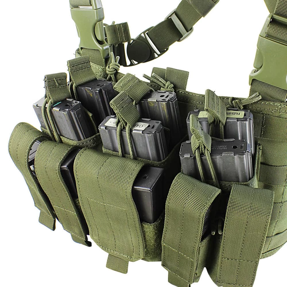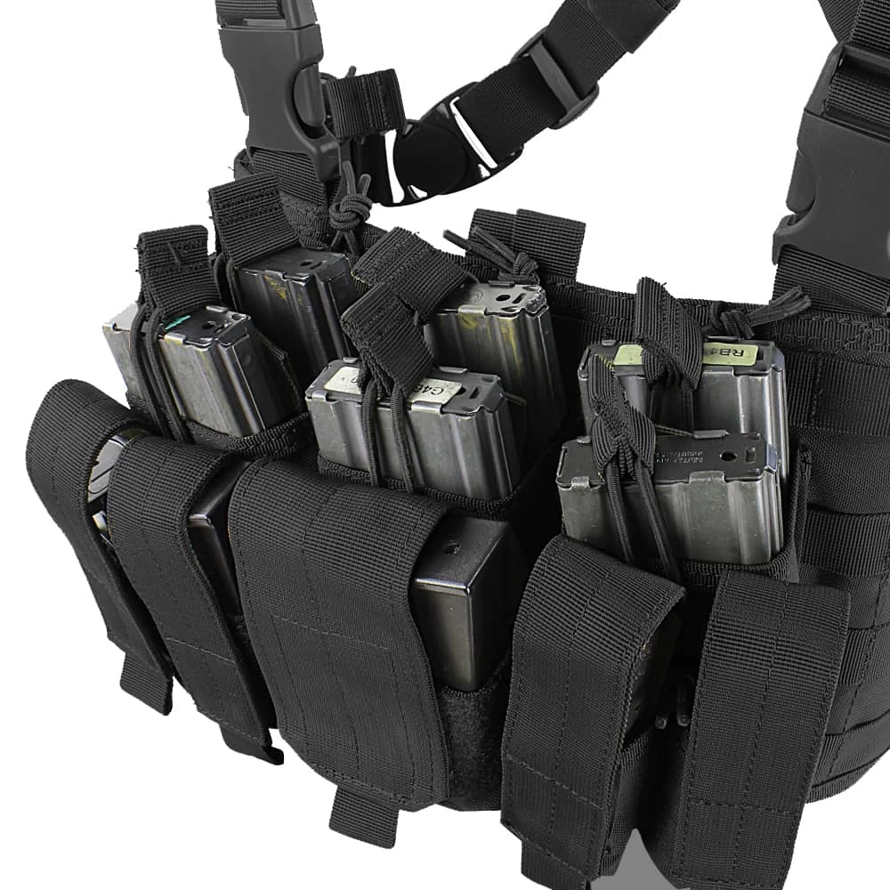 A must-have for operators, the Condor Recon Chest Rig is built to provide quick and easy access to mission essential items when every second counts. A front panel with three triple stacker kangaroo pouches provides ample storage space for gear, tech, and other necessities, while two open-top pockets enable lightning-fast deployment of your most used items.