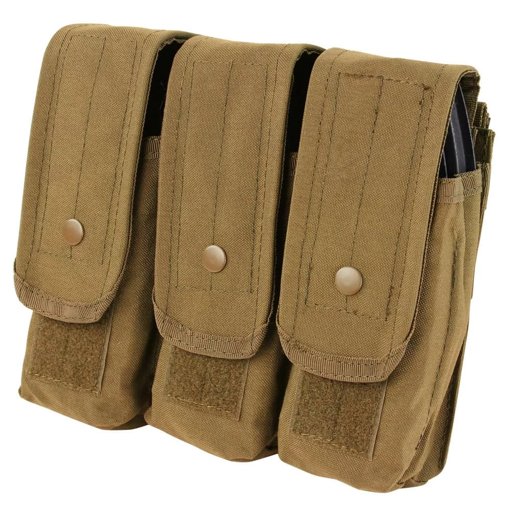 The Condor Triple AR AK Mag Pouch is a handy, secure, rugged way to store and secure your magazines at the range or on exercise. It measures 7.5 high x 9.5 wide x 3.5 deep and holds 3 mags per pouch compartment.
