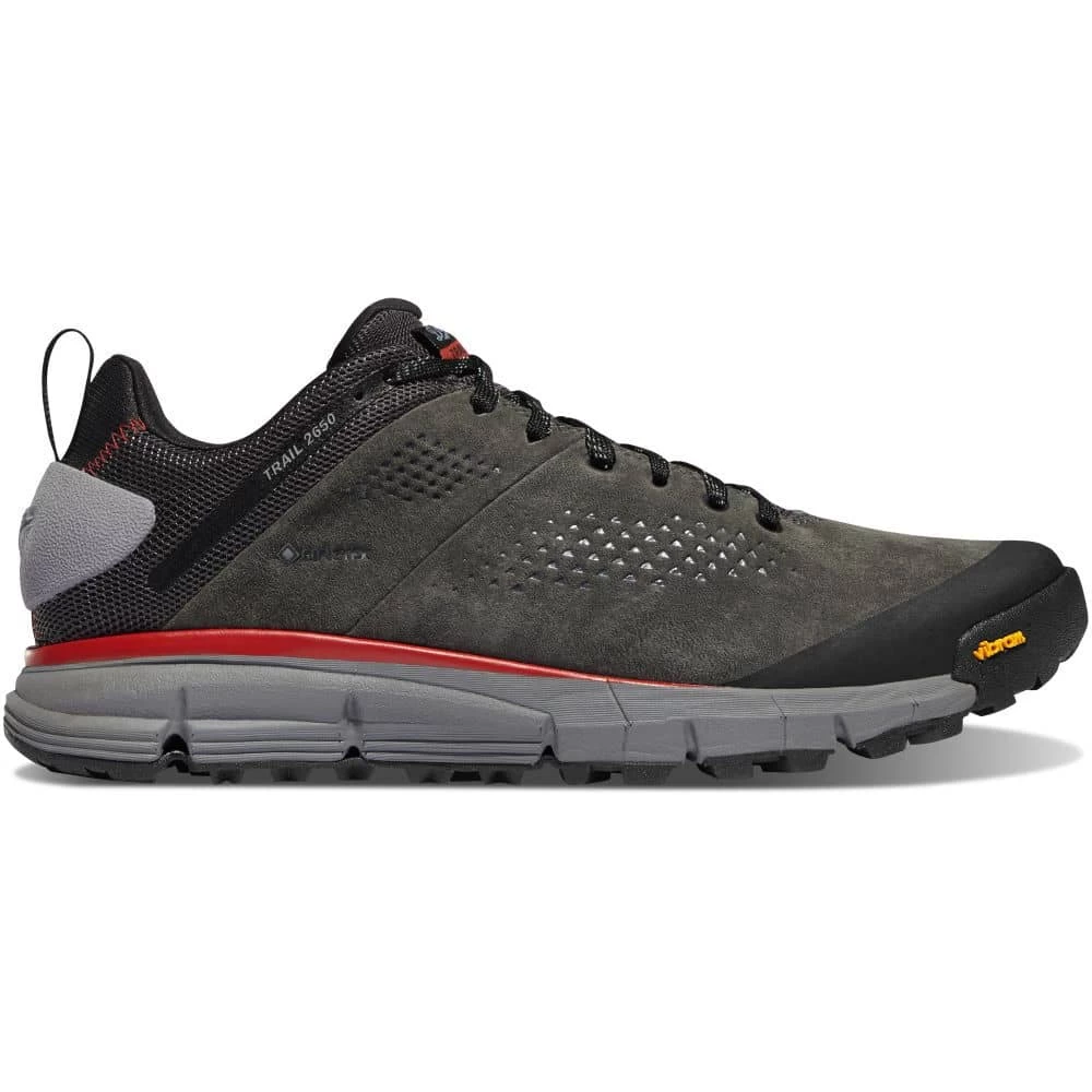 Inspired by the 2,650-mile-long Pacific Crest Trail, the Trail 2650 3″ GTX Shoe by Danner. seamlessly weaves together everyday durability and the stability of a hiker into one versatile, high-performance shoe. A durable leather and flex fabric upper resists abrasion, while a genuine GORE-TEX liner protects against intrusive moisture. An Ortholite. insole and Plyogo lightweight EVA foam midsole deliver all-day rebound, cushioning, and support. Step with confidence with a Danner. Trailguard TPU stability shank and Vibram. 460 outsole that delivers unbeatable gripping power on virtually any terrain.