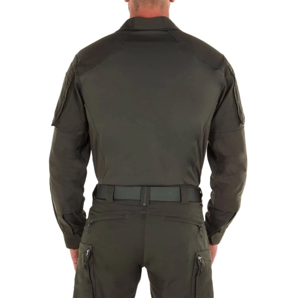 First Tactical’s Defender Series Shirts are the best of both worlds: performance built to handle any mission while maintaining the professional look needed when on normal patrol. In the performance department specialized pockets boast ample space for oversized gear, a specialize yoke eliminates unwanted bulk, and oversized sleeve pockets accept patches or embroidery. Creating the perfect warm weather shirt was at the forefront of design as articulated elbows, running gussets, and vented mesh locations provide advanced movement and breathability.