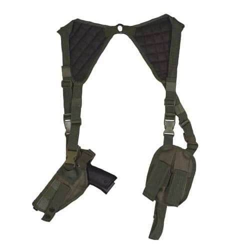 The Fox Advanced Tactical Shoulder Holster is an easy-on, easy-off universal shoulder holster with a double magazine pouch.
