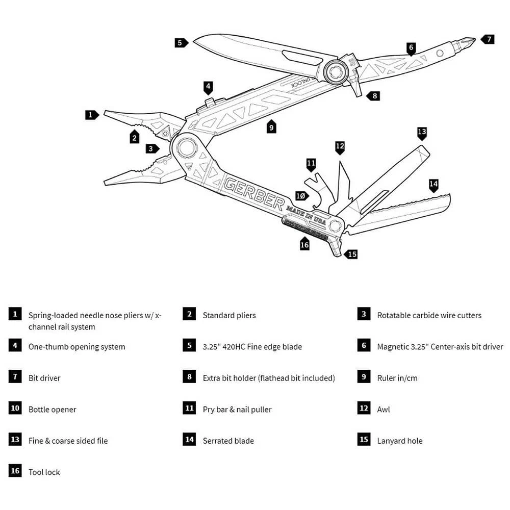 Gerber’s new multi-tool offers uncompromising performance through revolutionary design. The innovative center-axis driver opens to align like a real screwdriver, yielding maximum torque and rotation. No productivity is sacrificed with the addition of a 30% longer outboard Blade and one-thumb opening sliding jaws. Full size, real tools – the multi-tool just got a reality check.