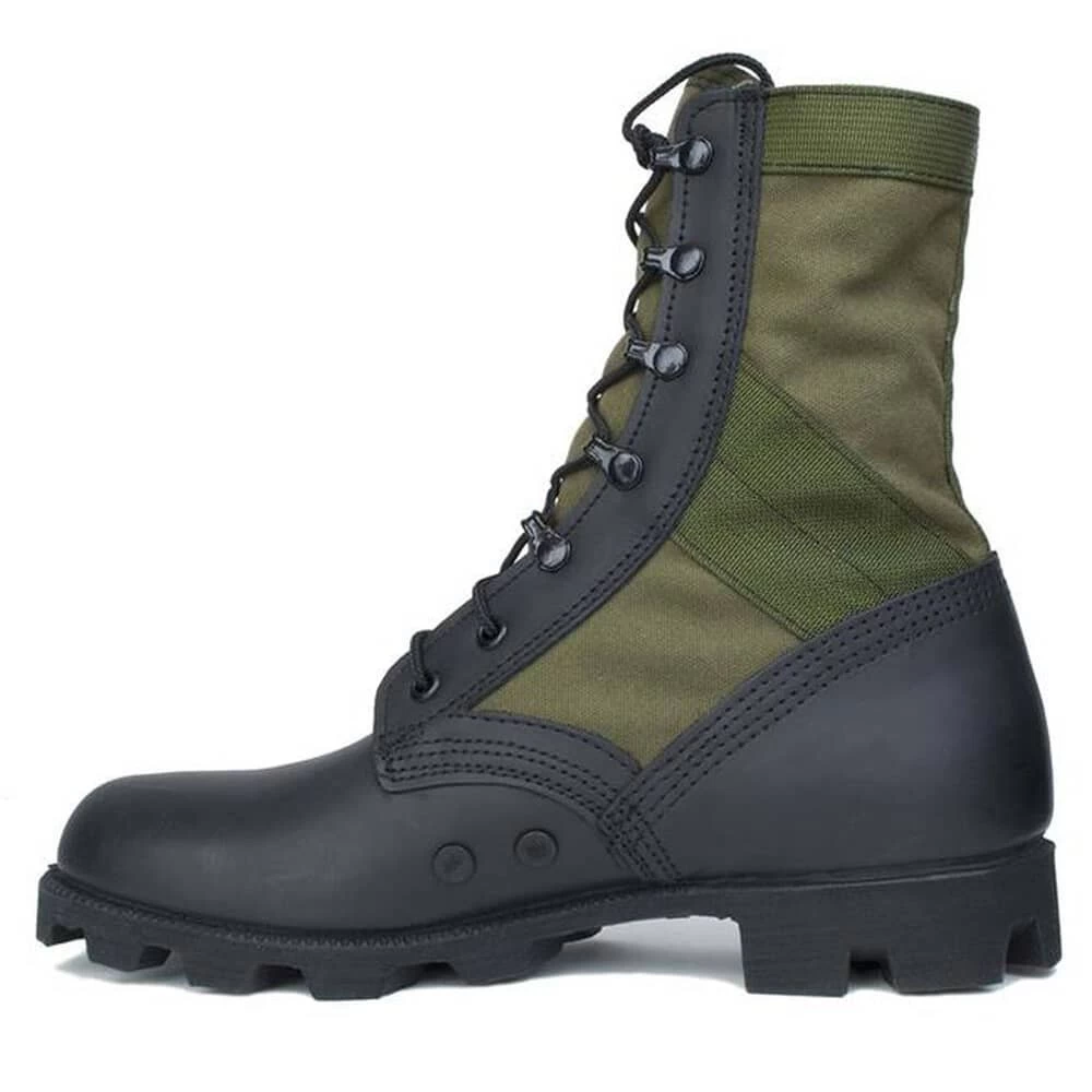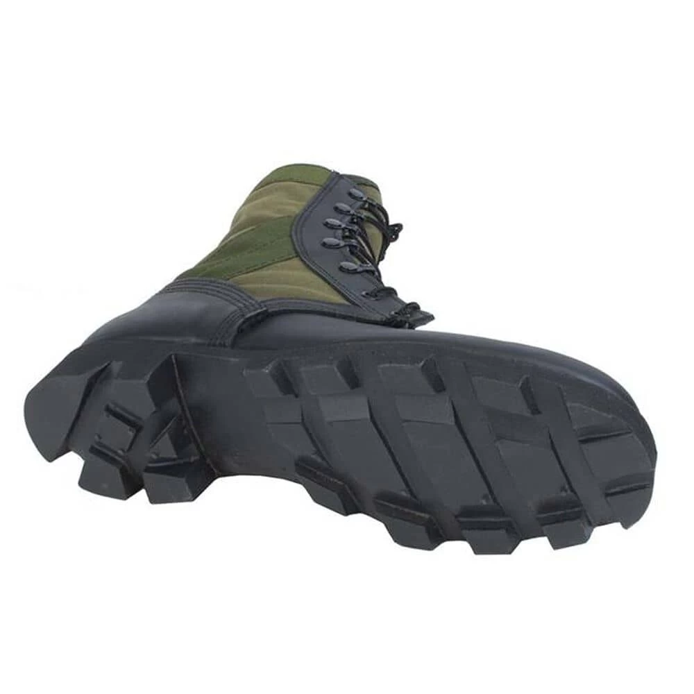Just like the original mil-spec equipment, these McRae Vietnam Era Jungle Boots are constructed with black full-grain leather and heavyweight olive drab cotton duck. The rubber Panama DMS outsole provides superior traction on slippery surfaces and helps keep you free from painful and dangerous injuries.
