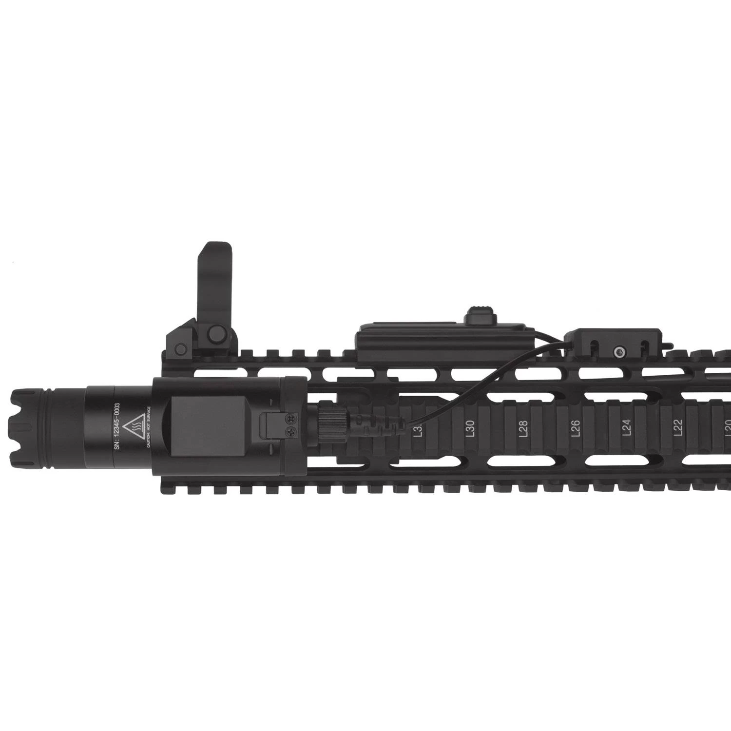 The NIGHTSTICK TWM-854XL Tactical Weapon-Mounted Long Gun Light is a powerful lighting solution for long guns. With an impressive 850 lumens output and a deep parabolic reflector, it delivers a bright and focused beam of light that reaches up to 245 meters. Designed to attach easily to a Picatinny Rail, this weapon light offers both momentary-on and constant-on lighting modes for tactical use. Crafted from rugged aircraft-grade 6061-T6 aluminum, it’s built to withstand the rigors of combat. The package includes the light with a remote pressure switch, a rail connector, wire management clamp, and all the necessary accessories, ensuring you have everything you need to enhance your firearm’s illumination.