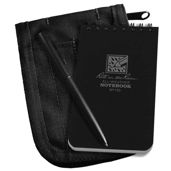 Containing a notebook, all-weather pen, and a fabric case to carry it all, the Rite in the Rain 3 x 5 pocket notebook kit includes everything you need to take notes and protect them no matter the circumstances. This notebook kit from Rite in the Rain contains a 3 x 5 notebook with 100 pages of water-repellant water in a universal green page pattern that can be used for taking detailed notes or making sketches, and the fabric carrying case features a rugged zipper closure with space for up to four writing utensils. The included all-weather ink pen has a flat metal barrel for easy handling, and it can write at any angle, on wet or dry paper, and in extremely cold as well as extremely hot temperatures.
