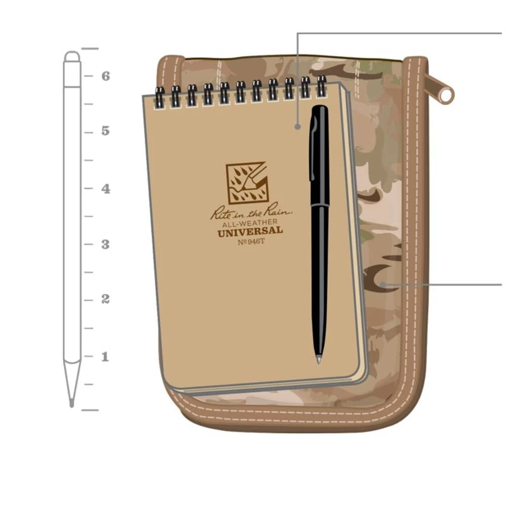 Military operators encounter some of the toughest conditions in the field, including harsh weather. The Rite in the Rain Waterproof Tactical Pocket Notebook was developed to allow you to record notes and information in any weather, offering powerful water resistance for reliable writing even in a downpour. The Rite in the Rain Waterproof Notebook is top-bound and sized perfectly for any pocket. The Polydura cover protects individual waterproof sheets, which can be written on even while submerged, with the right kind of utensils. The notebook contains 50 sheets of universal lined graph-style paper, perfect for note taking and creating scaled drawings. As an added benefit, there is practical reference material included inside the covers to aid you in the field.