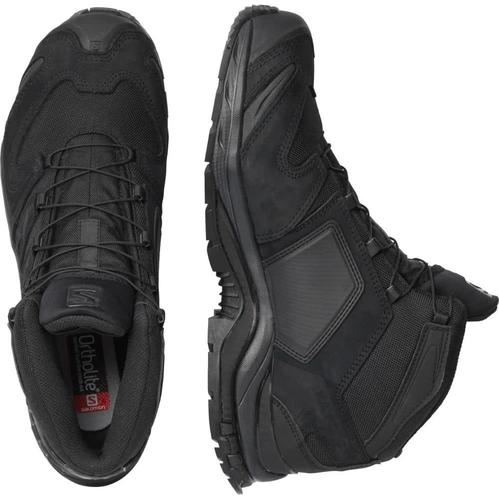 Designed with the needs of military service members, law enforcement officers, and public safety personnel in mind, the Salomon XA Forces Mid Boot combines the high-performance of athletic footwear with the mission-essential features of a duty shoe. Made from abrasion resistant synthetic material, this tactical shoe features a slip resistant Contagrip rubber outsole that delivers unbeatable traction on unpredictable terrain. An OrthoLite footbed and Energy Cell Dual Density EVA foam midsole provide cushioning and support all day long. The Salomon XA Forces Mid Boot features SalomonUs exclusive Quicklace lacing system that enables lightning-fast donning and doffing, so you can stay mission-ready 24/7.