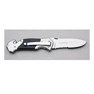 The Smith & Wesson 1st Response Drop Point Folding Knife features a partially serrated drop point Blade made from high carbon stainless-steel. An ambidextrous thumb mechanism and stainless-steel handle with black G-10 inlay enable rapid deployment. This 1st Response Liner Lock Folding Knife has an integrated belt cutter, glass breaking tool, a strap cutter, and pocket clip, making it ideal for emergency situations.