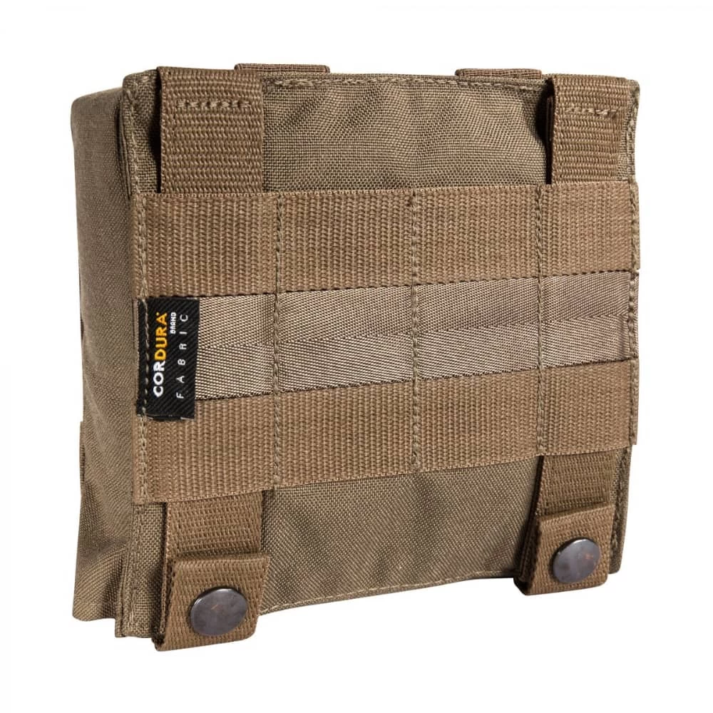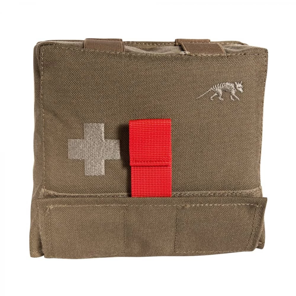 Be prepared to provide emergency medical care in virtually any situation with the Tasmanian Tiger IFAK Pouch S. This tactical medical bag is made from durable 700 D CORDURA. fabric that resists wear, tear, and abrasion. A hook and loop flap opens to reveal a pull-out panel with bungee retention for quick and easy individual loading. MOLLE loops and button snap straps enable secure attachment to plate carriers, tactical vests, belts, and more, making this med bag ideal for tactical, military, and law enforcement applications.