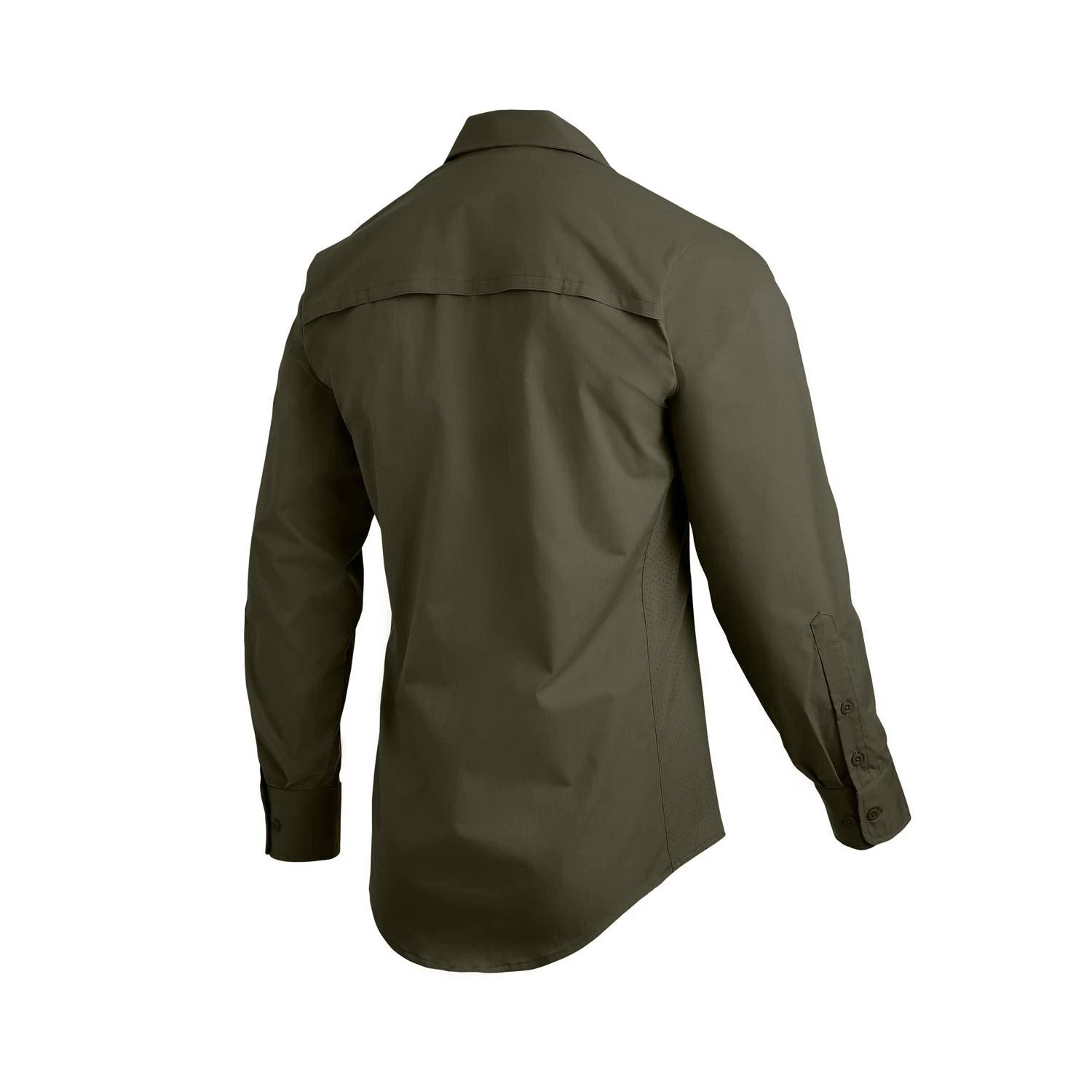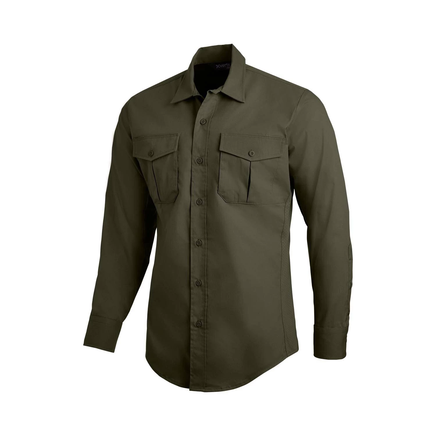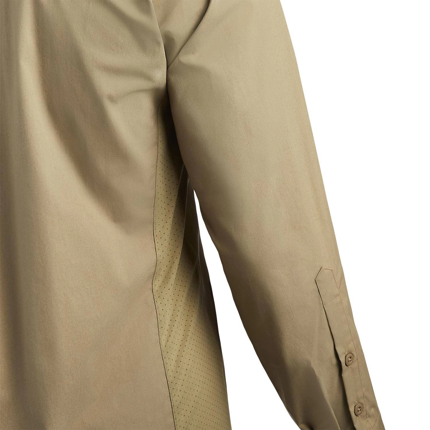 Crafted for those who demand the best from their tactical apparel, the Vertx Men’s Fusion Flex Long Sleeve Shirt features pointed flap chest pockets with faux buttons and VELCRO® Brand hook and loop closure. A vented back yoke with interior mesh to keep you cool when the heat is on, while Lycra® side panels that enable freedom of movement. With a longer tail that stays tucked in, the Fusion Flex Long Sleeve Shirt is the perfect blend of comfort, functionality, and durability.
